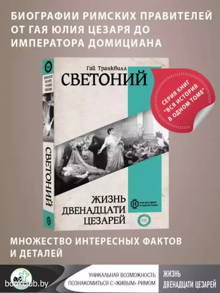 "Жизнь двенадцати цезарей" — это уникальный труд римского писателя и историка Гая Транквилла Светония, жившего в I–II вв. н.э., представляющий собой сборник биографий римских правителей от Гая Юлия Цезаря до императора Домициана. Автор приводит множество интересных фактов и деталей, которые позволяют читателю лучше понять эпоху и культуру того времени, отталкиваясь именно от личности героя.