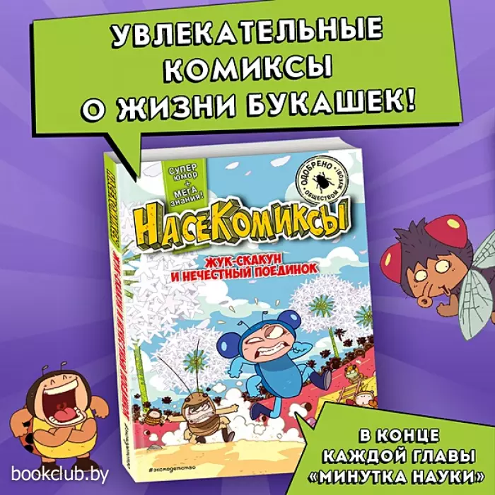 Присоединяйся к приключениям крутых букашек, читай о них смешные истории в формате красочного комикса — и одновременно узнавай самые любопытные научные факты о жуках, бабочках и других насекомых! В конце каждой главы тебя ждут познавательные страницы о жизни и устройстве этих удивительных существ!