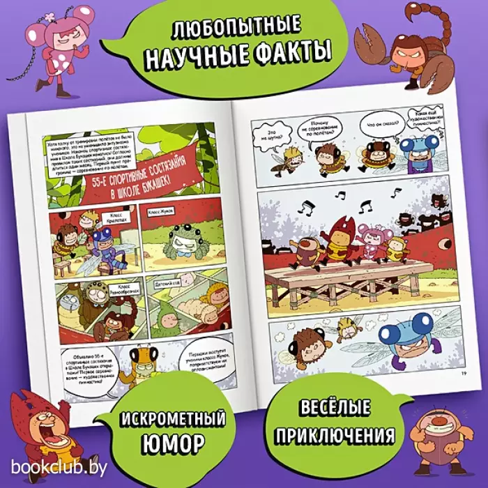 Впервые в России — серия познавательных комиксов о насекомых! Герои комикса — совсем как настоящие дети: ходят в школу, дружат, попадают в переделки, но… все они — НАСЕКОМЫЕ!