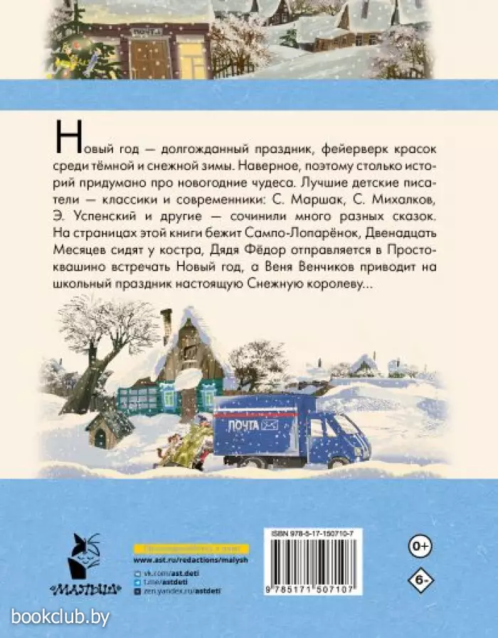 Новый год – долгожданный праздник, фейерверк красок среди тёмной и снежной зимы. Наверное, поэтому столько историй придумано про новогодние чудеса. Лучшие детские писатели – классики и современники: С. Маршак, С. Михалков, Э. Успенский и другие – сочинили много разных сказок. На страницах этой книги бежит Сампо-Лопарёнок, Двенадцать Месяцев сидят у костра, Дядя Фёдор отправляется в Простоквашино встречать Новый год, а Веня Венчиков приводит на школьный праздник настоящую Снежную королеву…