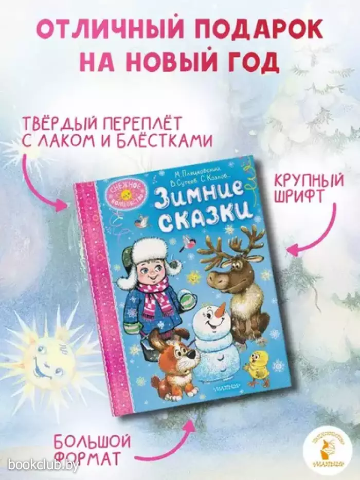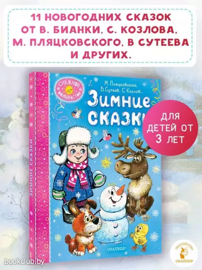 Зима — одно из самых волшебных и таинственных времён года. Не зря о ней написано столько произведений. Известные классики — В. Бианки, С. Козлов, В. Сутеев, М. Пляцковский и другие — также были очарованы этой снежной порой и придумали о ней свои сказки. Главные герои — животные и ребята — радуются зиме, рассуждают о том, какая она бывает, и, конечно же, загадывают желания. Ну а самый главный — Дед Мороз — эти желания исполняет!