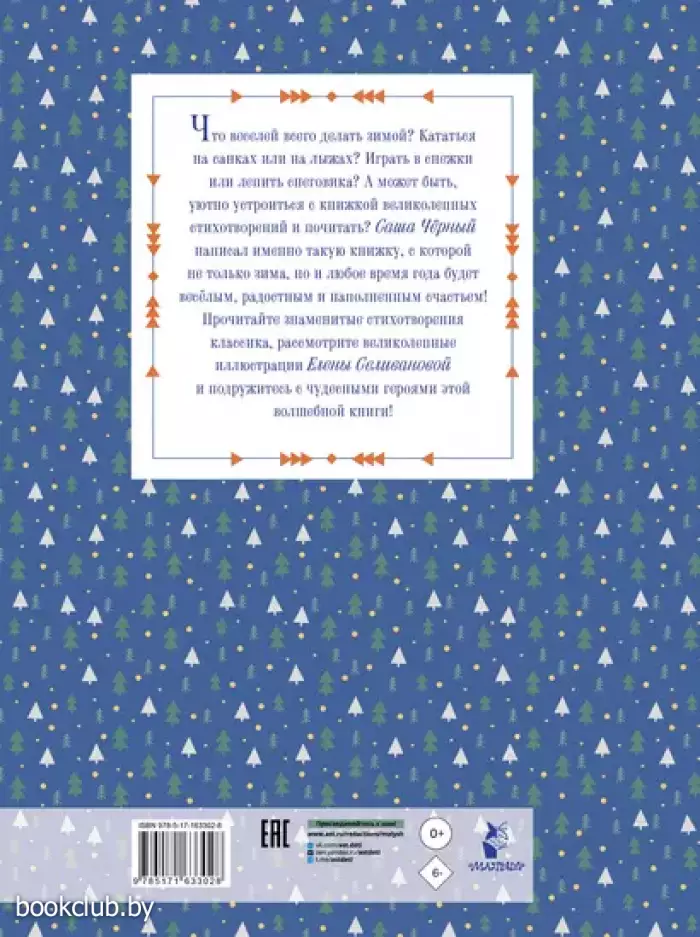 Великолепный сборник стихотворений Саши Чёрного можно читать весь год, круглый год! Здесь собраны самые знаменитые стихотворения о самом волшебном зимнем празднике, о доброте, о мире детства, о дружбе и обо всем том, что составляет такой трогательный и счастливый мир детства. Роскошные, яркие, добрые, весёлые иллюстрации Елены Селивановой обязательно понравятся и детям, и взрослым!