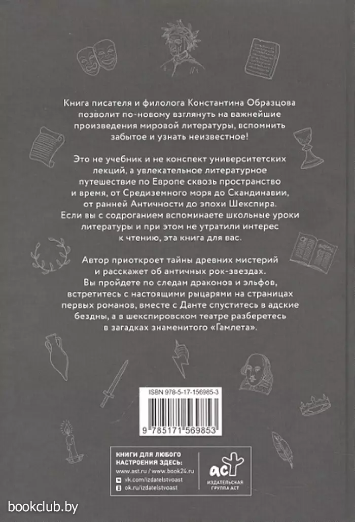 Автор приоткроет тайны древних мистерий и расскажет об античных рок-звездах. Вы пройдете по следам драконов и эльфов, встретитесь с настоящими рыцарями на страницах первых романов, вместе с Данте спуститесь в адские бездны, познакомитесь с величайшими писателями и поэтами, и узнаете, как литература прошедших эпох сформировала образ современной культуры.