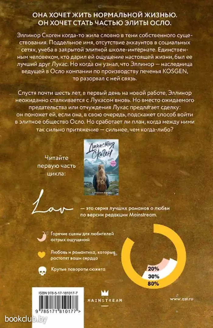 Эллинор Скоген когда-то жила словно в тени собственного существования. Поддельное имя, отсутствие аккаунтов в социальных сетях, учеба в закрытой элитной школе-интернате. Единственным человеком, кто дарил ей ощущение настоящей жизни, был ее лучший друг Лукас. Но когда он узнал, что Эллинор — наследница ведущей в Осло компании по производству печенья KOSGEN, то разорвал с ней связь.
