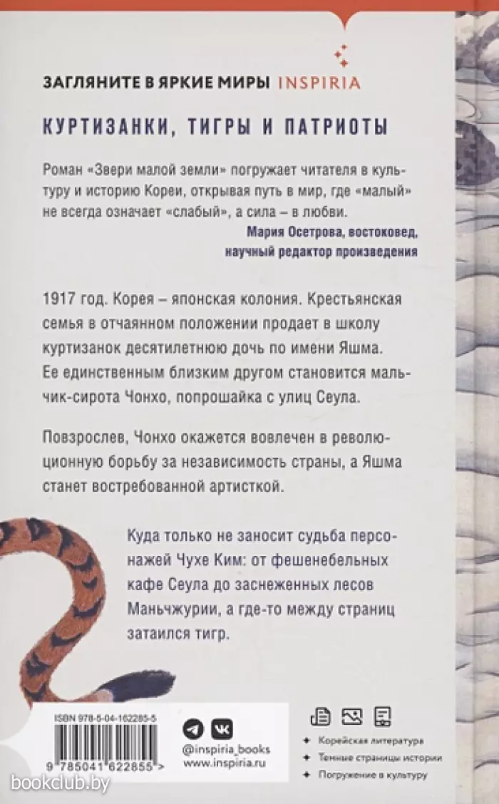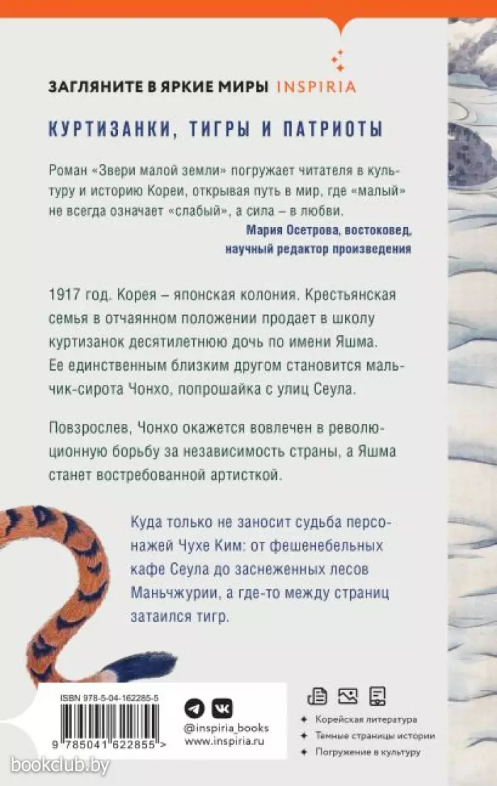 «Роман "Звери малой земли" погружает читателя в культуру и историю Кореи, открывая путь в мир, где "малый" не всегда означает "слабый", а сила — в любви». — Мария Осетрова, востоковед, научный редактор произведения