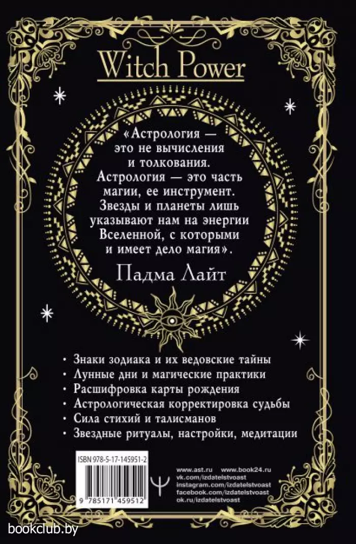 Говорят, что магия и расчеты — вещи несовместимые. Но книга Падмы Лайт «Звездная магия. Путеводитель для современной ведьмы» серии «Witch Power» показывает обратное. Астрологические расчеты обращают читателя к энергиям Вселенной и могут магическим образом изменить всю жизнь, если знать, как ими воспользоваться. Вы научитесь читать натальные карты, гороскопы, узнаете о явных и скрытых свойствах знаков зодиака, лунных дней, домов и даже стихий. Такая астрология несет в себе волшебство магических практик, ритуалов и настроек — все, чтобы стать сильной астроведьмой.