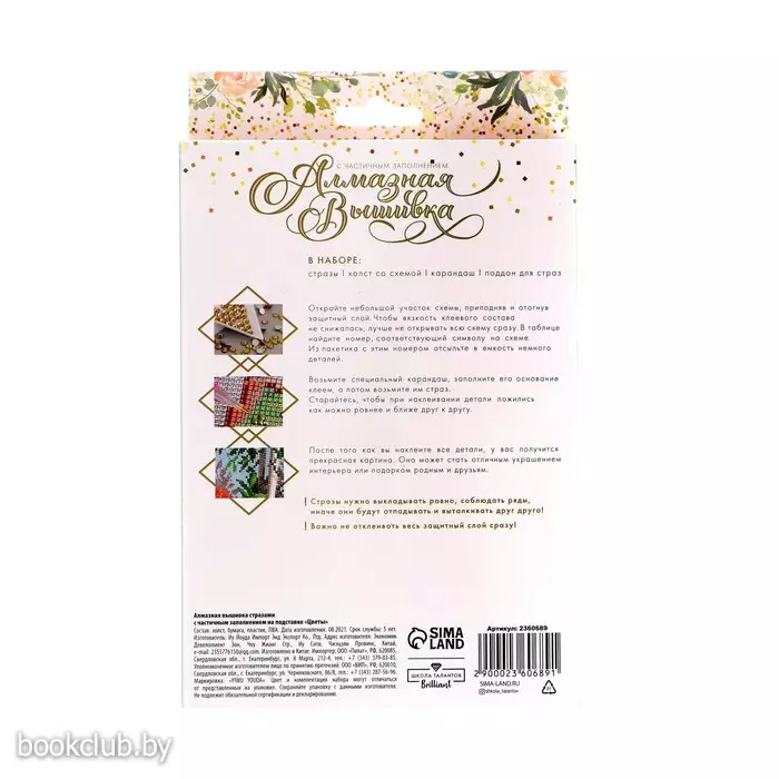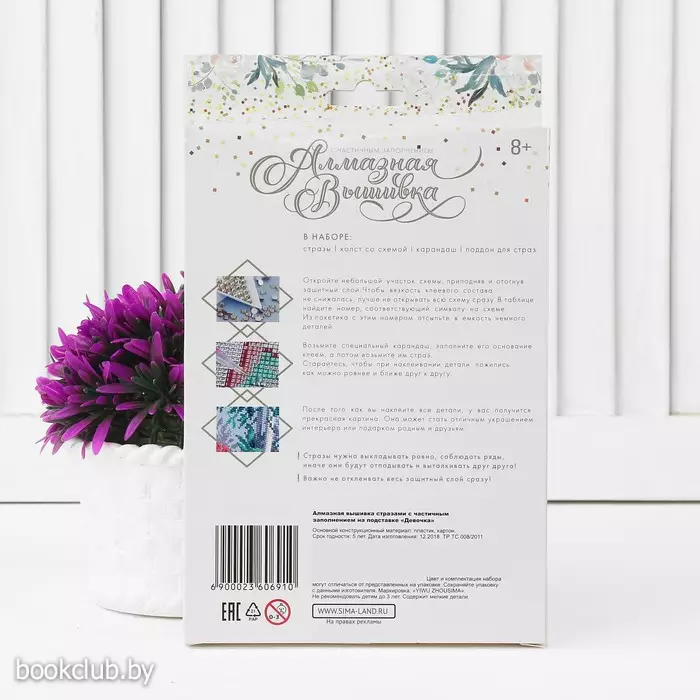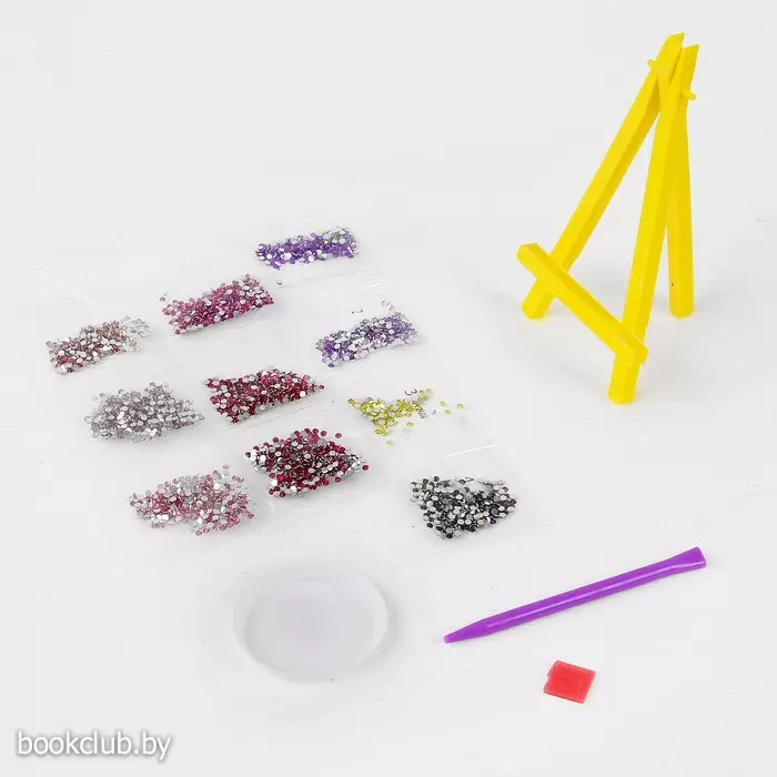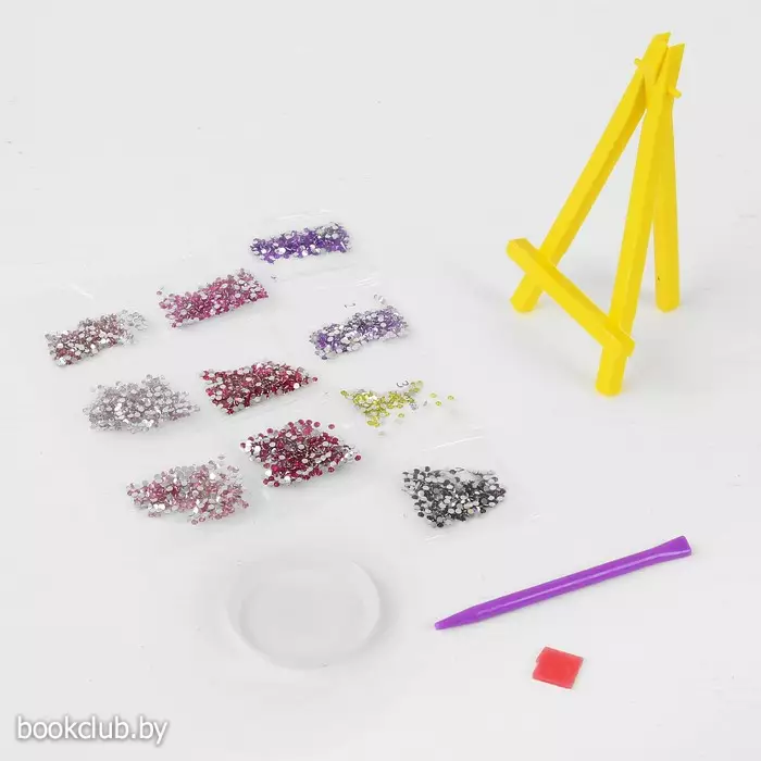 Новая серия сверкающих картин c частичным заполнением на мольберте позволит создать настоящий шедевр своими руками!Разложите кристаллики с помощью карандаша по указанной схеме, полностью заполнив полотно. Картонная основа с клеевым покрытием будет надёжно удерживать стразы. На картине уже обозначены необходимые оттенки. Часть картины предстоит заполнить стразами, другая часть напечатана на самом холсте — такое изделие легче и быстрее создать. Поэтому набор такого небольшого формата подойдёт для тех, кто впервые пробует свои силы в этой технике или любит быстро добиваться результата.В данном наборе есть небольшой мольберт, с ним готовое творение можно удобно расположить на полке или столе без дополнительных креплений. В наборе есть всё необходимое:картонный холст со схемой;стразы;карандаш для страз;клеевая подушечка;подставка для готовой картины;ёмкость для страз. Это отличная покупка по хорошей цене! Надеемся, вы не забудете поставить оценку этому товару. Для вашего удобства при оформлении заказа по телефону назовите код товара: 189078