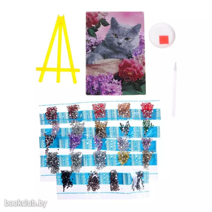 картонная основа;стразы;поддон для стразов;специальный карандаш;подставка;клеевая подушечка. Наша компания работает только с проверенными поставщиками и брендами, поэтому вы делаете правильный выбор. Для вашего удобства при оформлении заказа по телефону назовите код товара: 189073
