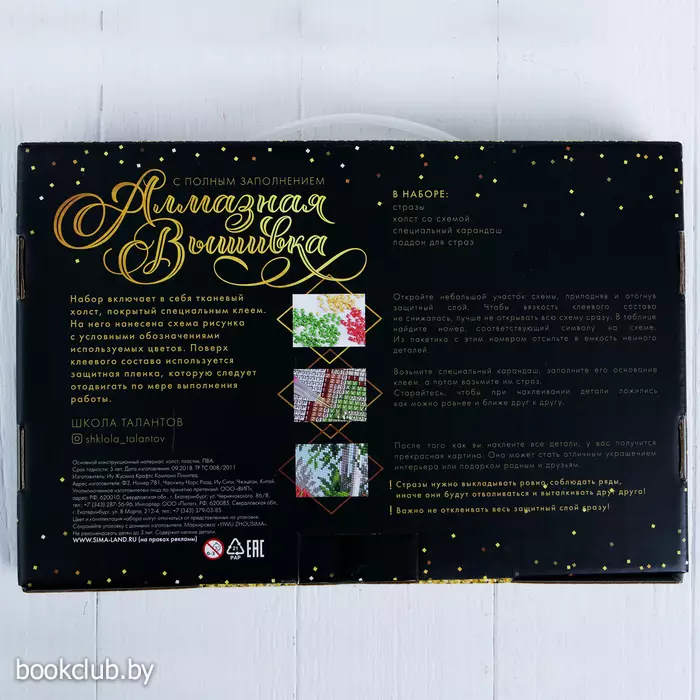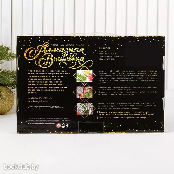 холст со схемой;стразы;специальный карандаш;поддон для стразов;клеевая подушечка. Наша компания работает только с проверенными поставщиками и брендами, поэтому вы делаете правильный выбор. Для вашего удобства при оформлении заказа по телефону назовите код товара: 188993
