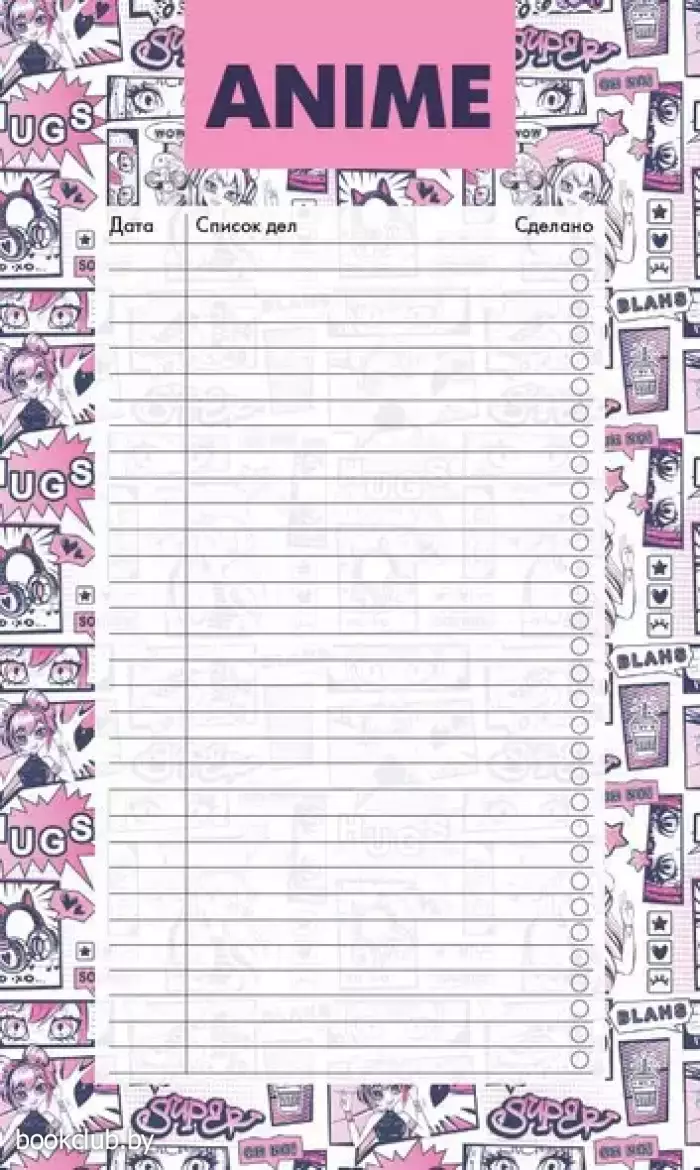 Блок для записей с отрывными листами (to-do list). Аниме (11х19 см, 64 л.)
