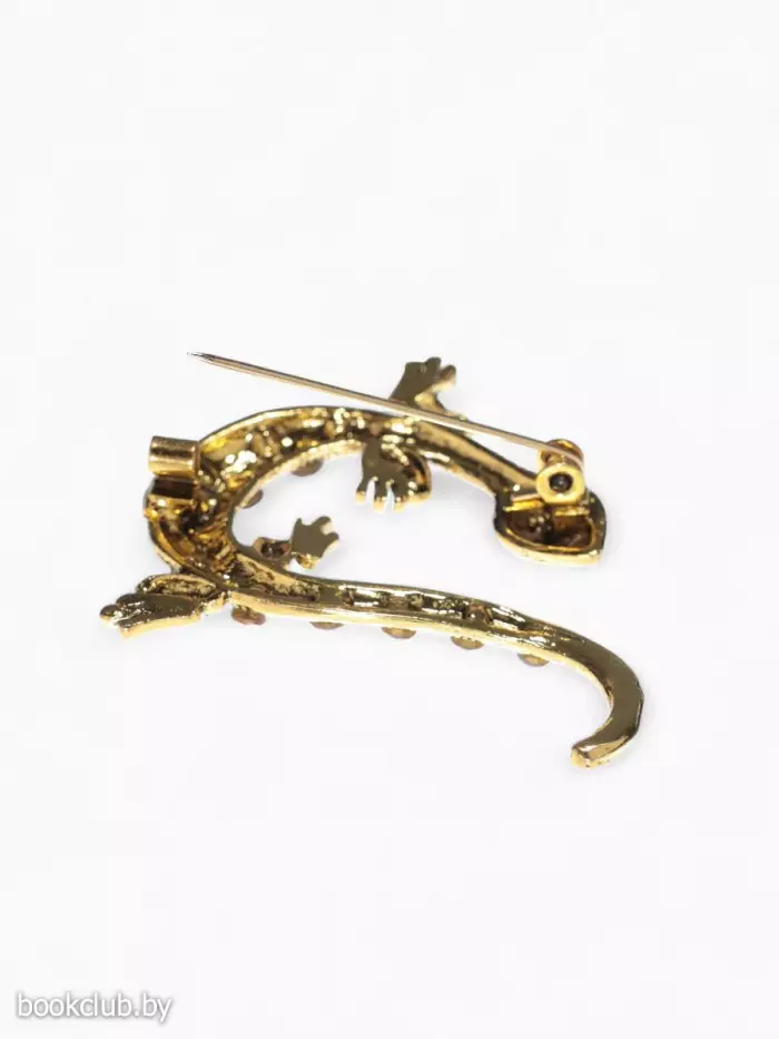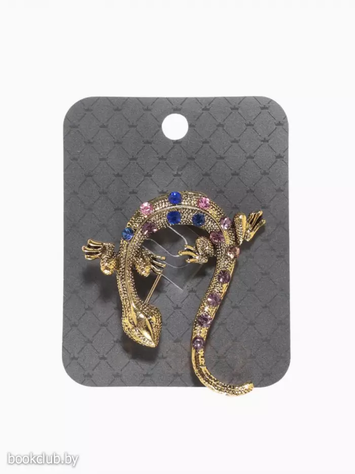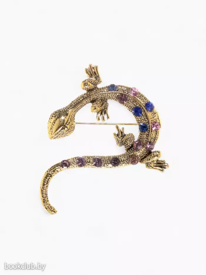 Брошь со стразами «Ящерица», разноцветная в чернёном золоте