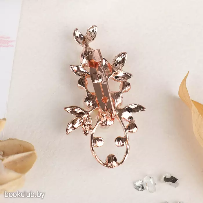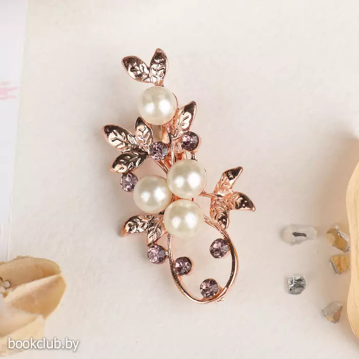 Брошь «Жемчужная ветвь» с росой, цвет бело-фиолетовый в розовом золоте