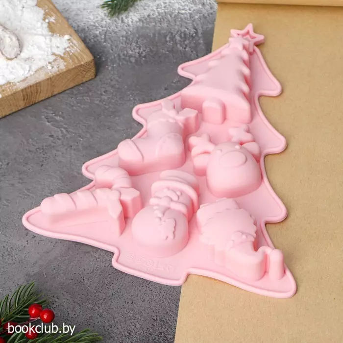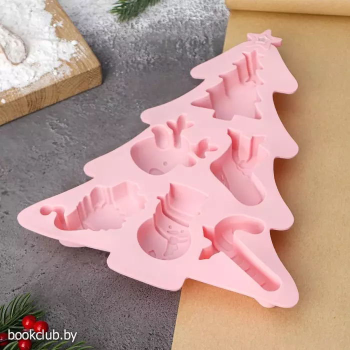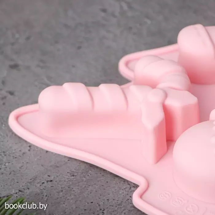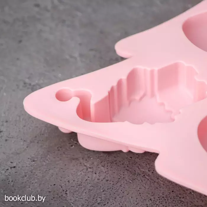 Форма для выпечки Доляна «Новогоднее настроение», силикон, 23×19×2,5 см, 6 ячеек, цвет розовый