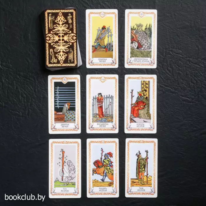 • Материал: картон, бумага, текстиль • Размер упаковки: 19х12,5 см • В комплекте: карты — 78 шт. , атласный мешочек для хранения; скатерть; инструкция с толкованием.