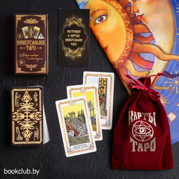 Возрастное ограничение — 16+. Гадание Таро — быстрый путь к ответам на волнующие вопросы. Карты упакованы в мешочек. В набор также входит скатерть для расклада карт.
