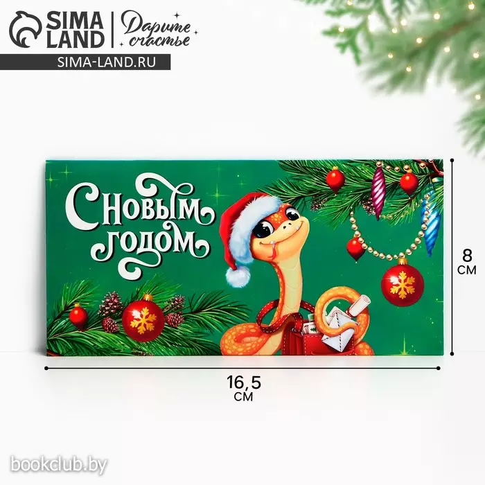Конверт для денег «Змея 2025», зелёный, 16.5 х 8 см, Новый год