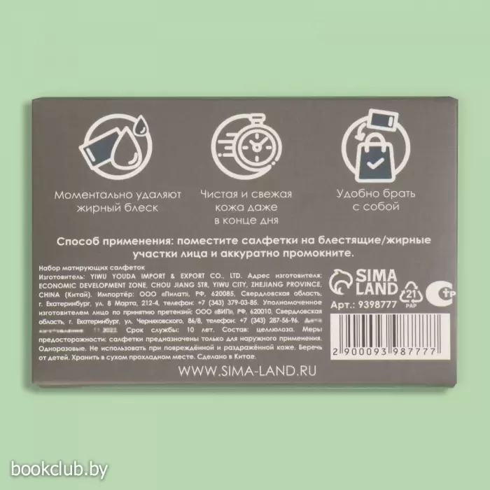 Матирующие салфетки Natural, 50 шт., с антибактериальным эффектом, чёрный уголь