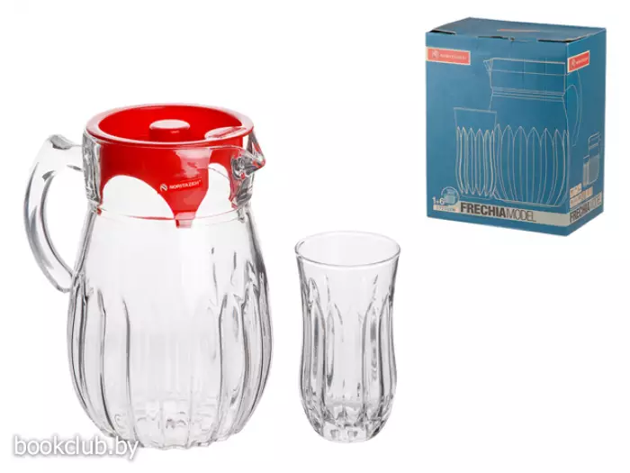 В наборе: кувшин объемом 1,5 л и 6 стаканов объемом 300 мл.
