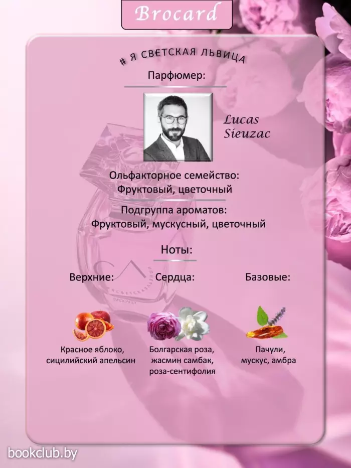 Забудьте всё, что вы о ней знали! Это – новая Светская львица. Молодая Львица. Ее штаб-квартира – на Патриках и Бронной, её день начинается с соцсетей, она – икона стиля, за ней следят поклонники и трендхантеры, а «Светская Львица» – её аромат! Созданная Лукой Сьюзаком композиция начинается с ярких нот красного яблока и красного апельсина. Продолжается дуэтом роз – благородной болгарской и искрящейся розы-сентифолии. Длинный шлейф амбры, пачулей и нежного мускуса надолго остается в памяти. И в воздухе. Теперь она такая! «Светская львица» нашего времени...Верхние ноты: красное яблоко, сицилийский апельсин...Средние ноты: болгарская роза, жасмин самбак, роза-сентифолия...Базовые ноты: пачули, мускус, амбра. Это отличная покупка по хорошей цене! Надеемся, вы не забудете поставить оценку этому товару. Для вашего удобства при оформлении заказа по телефону назовите код товара: 180209