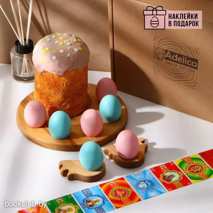 Пасхальный набор Adelica: подставка под яйцо и кулич, 2 подставки под яйцо, термонаклейки в подарок