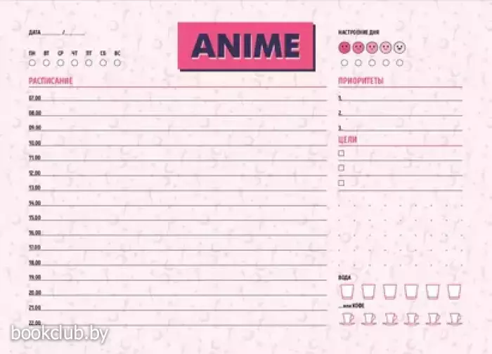 - Можно отмечать настроение дня, количество выпитой воды и кофе.