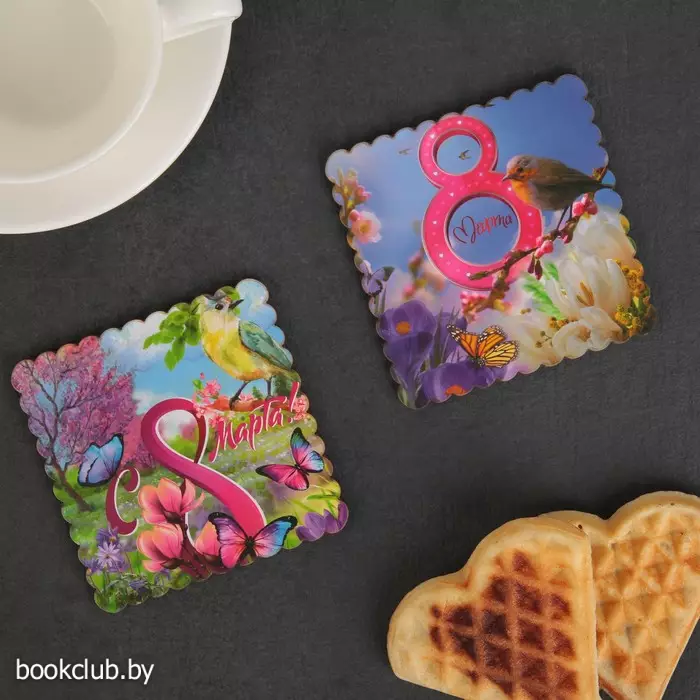 Подставки под горячее «С 8 марта!», 9,2×9,2 см, 2 шт