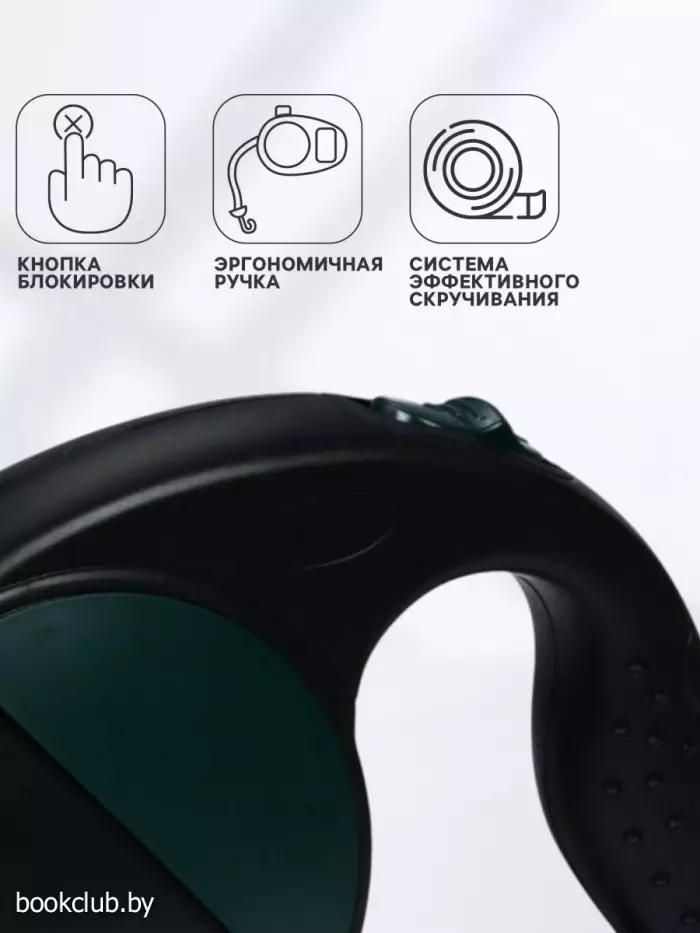 Рулетка - поводок для собак, лента 6 м, чёрная.зелёная