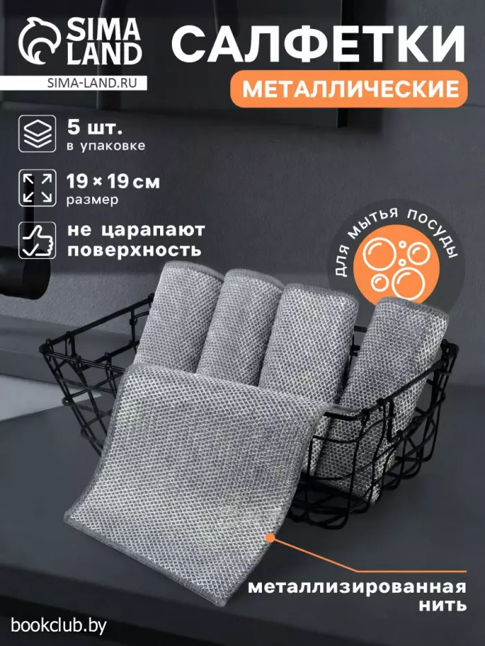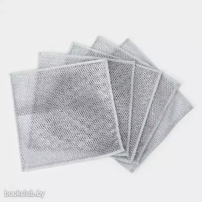 Сетка для мытья посуды узелковая, металлическая, однослойная, 5 шт., 19×19 см