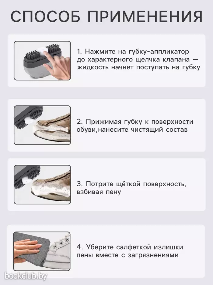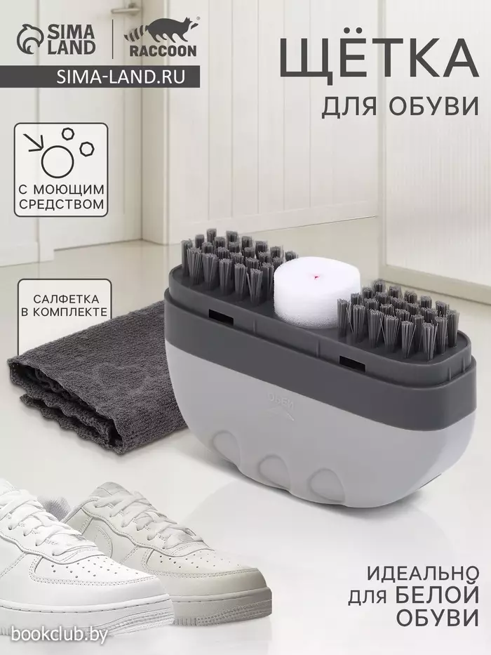 Щётка для обуви с моющим средством Raccoon, салфетка в комплекте, картонная коробка