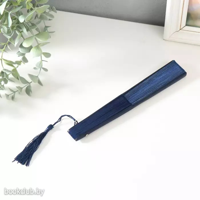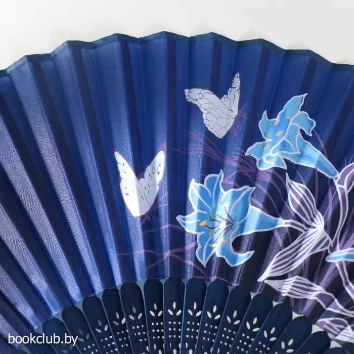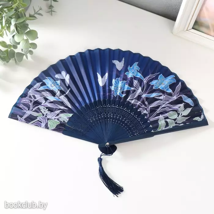 Веер дерево, текстиль h=21 см «Синии лилии и бабочки» синий, с кисточкой